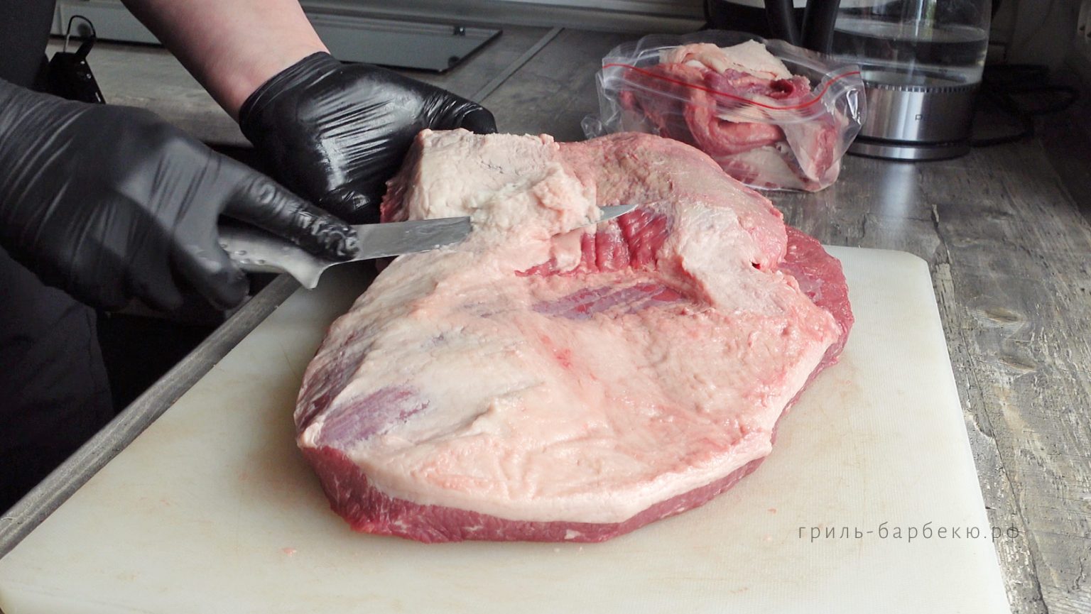 белый слой жира, покрывающий кусок мяса сверху (пример такого куска в «шапке» — отруб пиканья). Если мясо планируется запекать как ростбиф, то гриль-мастер может оставить «шапку» на месте — чтобы жир при запекании таял и делал мясо более сочным. Другая ситуация, когда мясо предстоит нарезать на стейки и поджарить на сильном жаре — тогда жир срезают, оставляя слой не более 5 мм.