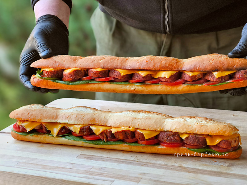 Французские сэндвичи со свиной вырезкой на гриле — это сэндвичи на основе багетов с хрустящей корочкой, где главный ингредиент начинки — подкопчённая на гриле свинина. Приготовьте их по нашему рецепту для обеда, перекуса или дружеских посиделок: каждый сэндвич длиной 40 см — это 2-3 полноценных порции, в зависимости от аппетита едоков! Рецепт подходит для пеллетных, угольных и газовых грилей.