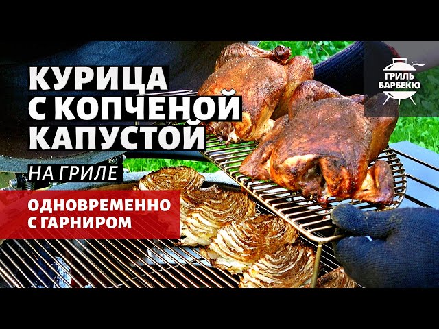 Курица с копченой капустой на гриле — это вкусное и ароматное сочетание блюда и гарнира, которые одновременно коптятся в гриле. Приготовьте это угощение по нашему рецепту и накормите разом 6-8 гостей! Подойдут любой гриль или коптильня, где можно создать непрямой средний жар. Птица получается сочной и легко разбирается на кусочки, а капуста сохраняет приятную хрустинку.