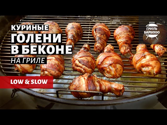 Куриные голени в беконе на гриле — это вкусное и сочное блюдо для семейного ужина или вечера в кругу друзей. Сделайте его по нашему простому рецепту с минимальным количеством ингредиентов! Приготовление в режиме low-and-slow даёт этим куриным ножкам ароматную корочку и оставляет мясо сочным, а ломтики бекона добавляют особенные оттенки вкуса и лёгкую солёность. Блюдо можно сделать на любом гриле, который позволяет поддерживать 120 °C в течение 2-3 часов.