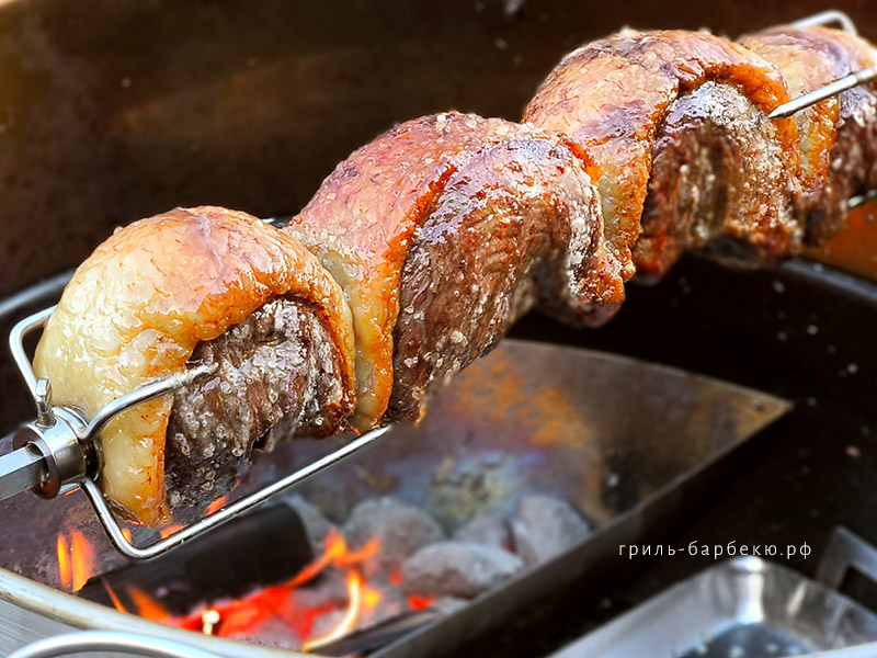 Обработайте говядину: подсушите пиканью бумажным полотенцем, отрежьте с поверхности все плёнки, также отрежьте толстый слой жира с узкого края (если он там есть). Жировую шапку, которая покрывает кусок, на этом этапе не трогайте. Кстати, для этого рецепта лучше подходит мясо, где производитель сохранил эту шапку, а не зачистил.
