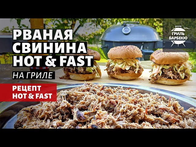 Рваная свинина hot & fast — это самая быстрая вариация знаменитой рваной свинины. Приготовьте её по нашему рецепту согласно методике hot & fast, что дословно как раз и означает «горячо и быстро»! В то время как классическая рваная свинина коптится на гриле 10-12 часов, этот рецепт сокращает время приготовления почти вдвое. Мясо получается очень нежным и ароматным, разве что корочка не такая выраженная, чем по классической технологии. Обязательно перемешайте готовую свинину, чтобы ароматная корочка распределилась по всему мясу!