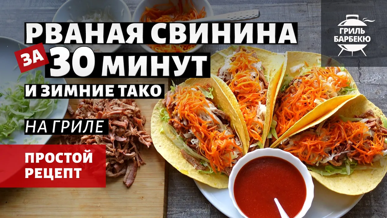 Зимние тако на гриле — это вкусная сезонная версия фастфуда с мексиканскими корнями. Готовится с рваной свининой, маринованной капустой и корейской морковью. Сделайте это угощение по нашему рецепту с 5-минутным соусом барбекю! Особенно удобно, если рваное мясо приготовить на гриле заранее и держать наготове в морозилке.