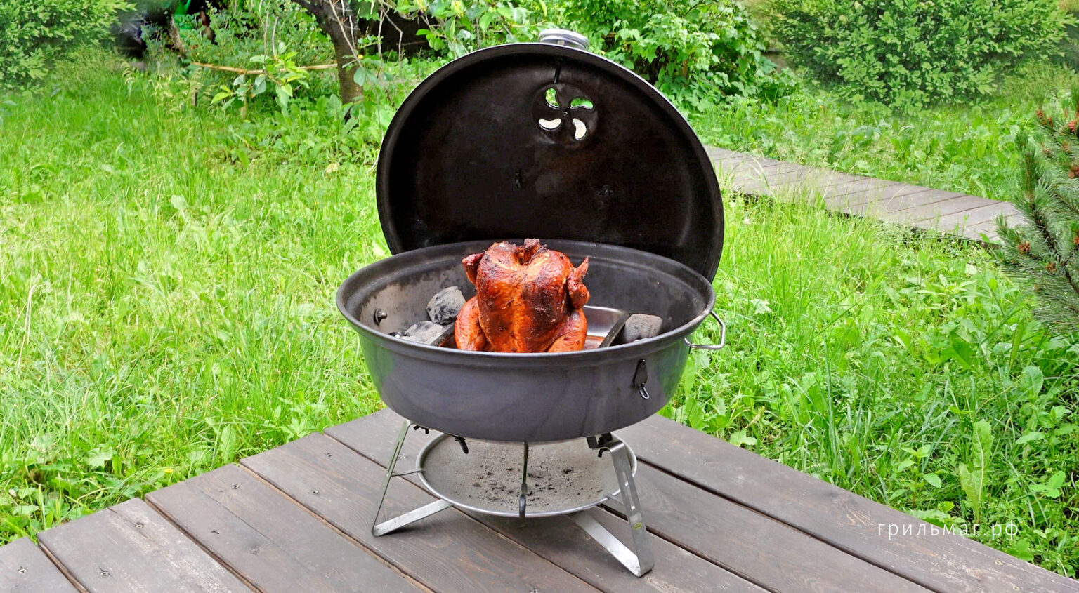 аксессуар для сферического угольного гриля, который существенно экономит количество движений при приготовлении. Когда гриль-мастеру нужно открыть крышку гриля и проверить состояние блюда, держатель позволяет сдвинуть её на край котла, а не снимать её полностью и искать для неё место. Фактически это металлическая рамка, которая удерживает крышку на весу. Некоторые модели грилей имеют держатель в своей комплектации, для остальных его можно найти в продаже как навесной аксессуар.