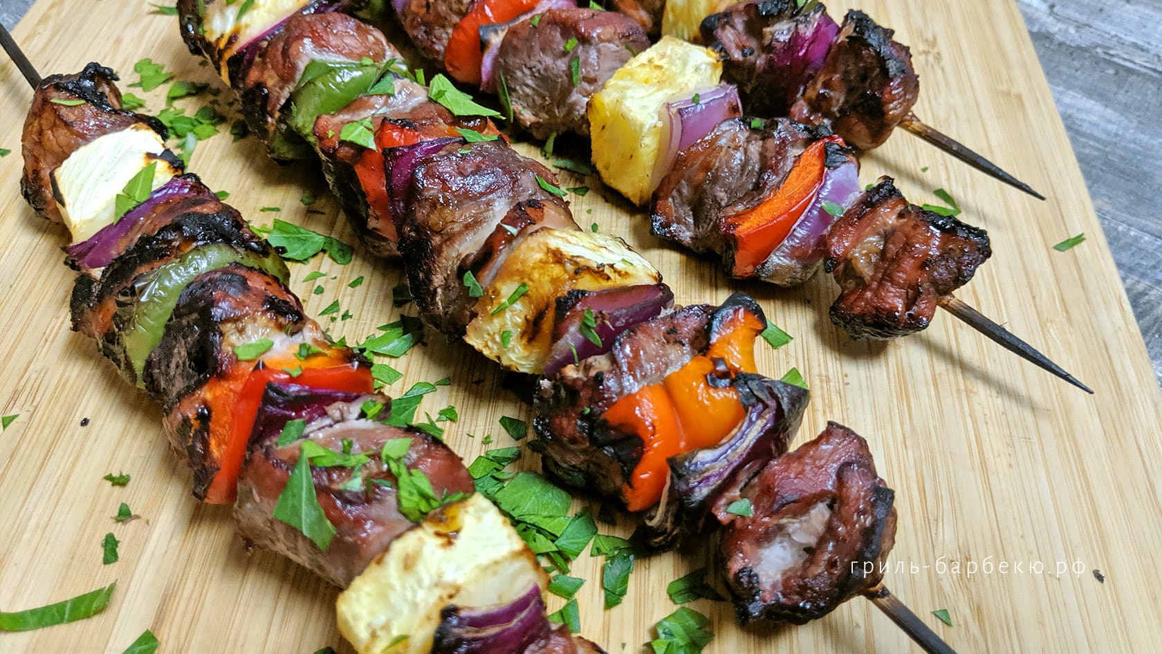Пошаговый рецепт с видео: Свиные шашлычки на гриле в соусе терияки с ананасами