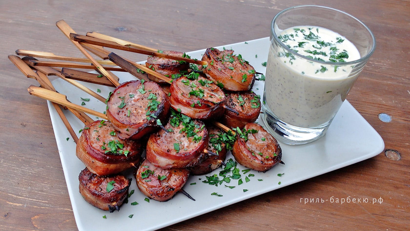 Впечатляют одним своим видом и моментально идут нарасхват! Идеальный кандидат на роль стартовой закуски для разгона аппетита. Бекон добавляет нежному мясу особенный аромат, а довершить симфонию можно сливочно-горчичным соусом и рубленой зеленью.