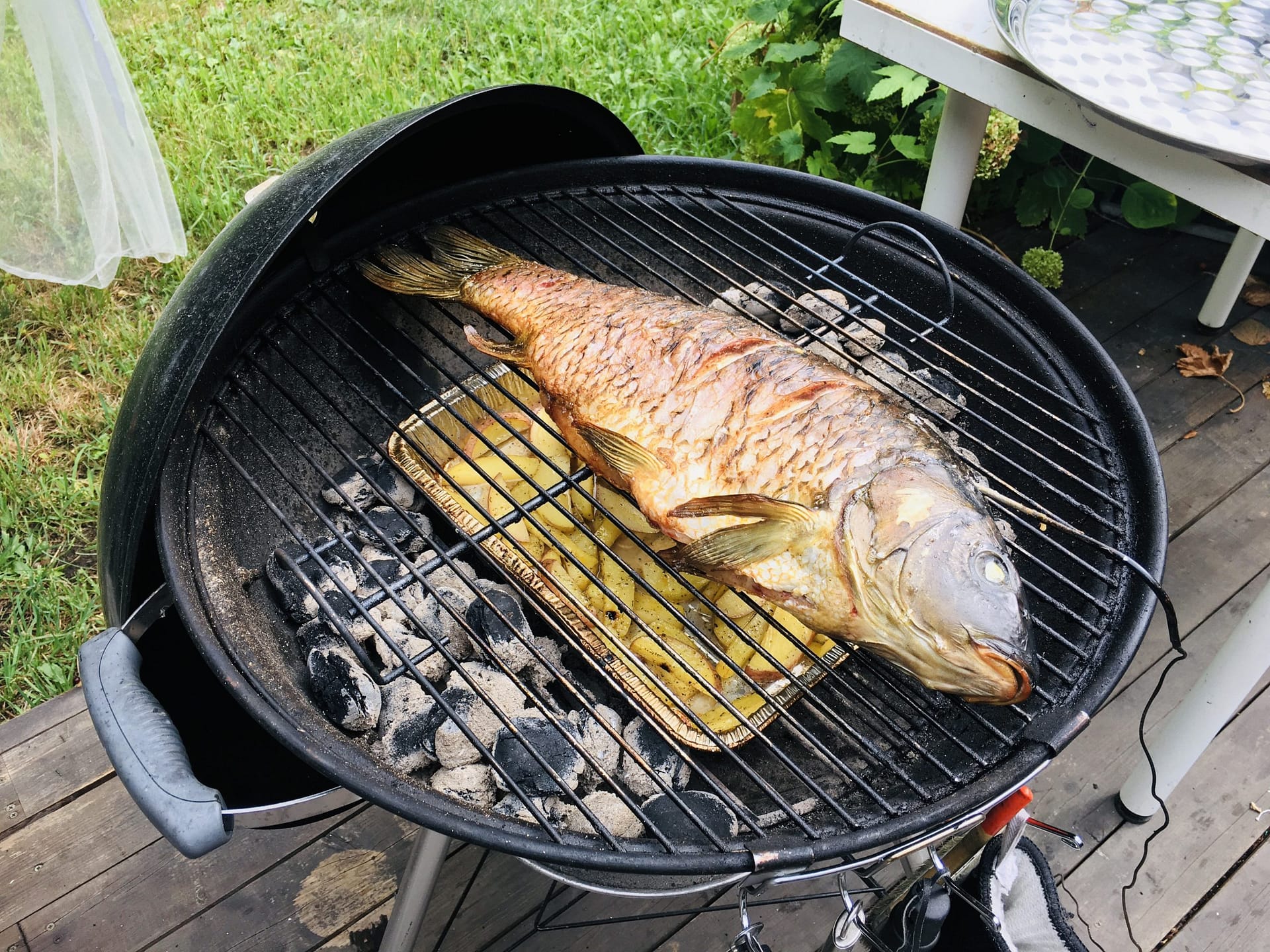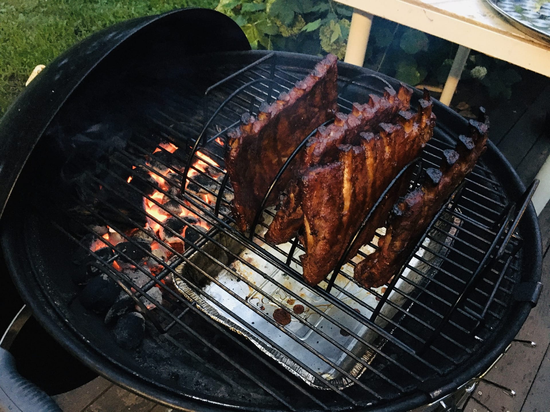 А у меня такая же проблема, как у Кирилла. Владею вебером (Original Touch 47 см) уже почти 10 лет, уже второй, 57-сантиметровый докупил, но каждый раз танцы с бубном с этим углем. С большой долей вероятности он тухнет. Это при том, что все пункты, прописанные Сергеем, я никогда не нарушал.Пробовал менять уголь, брикеты - один черт. Уже даже думал о том, что может у нас какое-то давление атмосферное аномальное, что кислород нормально не затягивает.Сейчас вот после рецепта "Куриные бедрышки на гриле с соусом Алабама" снова задумался. Сергей просто сваливают кучу крупных кусков угля (у меня такой же), немного поджигает газом и на всем этом коптит 2-3 часа. Для меня это просто из области фантастики. У меня два варианта - или я забиваю стартер углем и раскочегариваю его до такой степени, что он наполовину прогорает - тогда он не тухнет, но прогорает очень быстро. Или уголь вроде весь разгорается, я его высыпаю - и минут через 10 температура начинает падать, надо открывать, работать опахалом и т.д.С брикетами такая же фигня. Если кочегаришь до стадии. когда они держат форму, то они тухнут. Если сильно разогреваешь, то они уже при высыпании в труху превращаются. Пробовал хранить уголь в доме, в тепле и сухости - ноль эмоций.