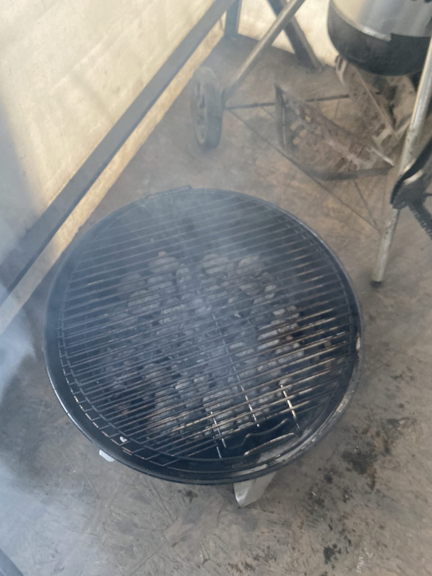 Всем добрый день!Тема для новых пользователе WSM и подобных коптилени так в чем собственно суть темы - методы чистки решёток в коптильнях типа Weber Smokey Mountain и им подобных, если вдруг случайно у вас не стоит рядом 3-6 горелочный газовый гриль или нет необходимости запускать 57 см угольный гриль для других блюд.1. Самое простое вытащить решётки и помыть их под водой если есть большая раковина, губка, моющее средство и желательно резиновые перчатки, чтоб помыл да выбросил.минусы- не в каждую раковину влезет решетка, и гарантировано все вокруг будет в воде и в чистящем средстве. Губку после этого - на выброс.2. После готовки немного остудив решётки сбрызнуть их раствором воды и уксуса в пропорции 50/50. Подождать минуту и протереть тряпкой или щёткой.минусы - надо ждать пока остынут решётки и, особенно под вечер, этим уже не охота заниматься.3. Коптильню запустить с одним полным стартером и затем собрать ее без средней секции, то есть нижняя часть, решетка для углей с кольцом, на кольца кладём решётки обе и закрываем крышкой. Пока ходим ищем воду в емкость, решётки прогреются до 250 градусов и потом чистим щёткой как обычно без всяких танцев с бубном. Решётки даже особо с места не двигаются при чистке.потом снимаем решётки, засыпаем ещё 3/4 стартера неразгоревшихся брикетов, собираем коптильню с центральной секцией и Начинаем коптить.минусы - не работает если используем другую методику розжига, а именно: засыпаем 1.5 или 1.75 стартера и разжигаем тремя кубиками сухого горючего.