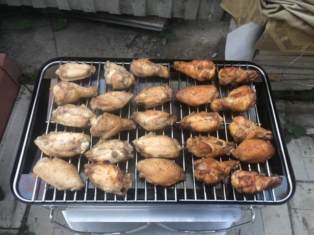 Заказал отсекатель жара, с ним можно всю поверхность гриля выкладывать крыльями или ножками (на фото половина того, что можно). Держит 140-150 градусов в течение 2 часов легко.