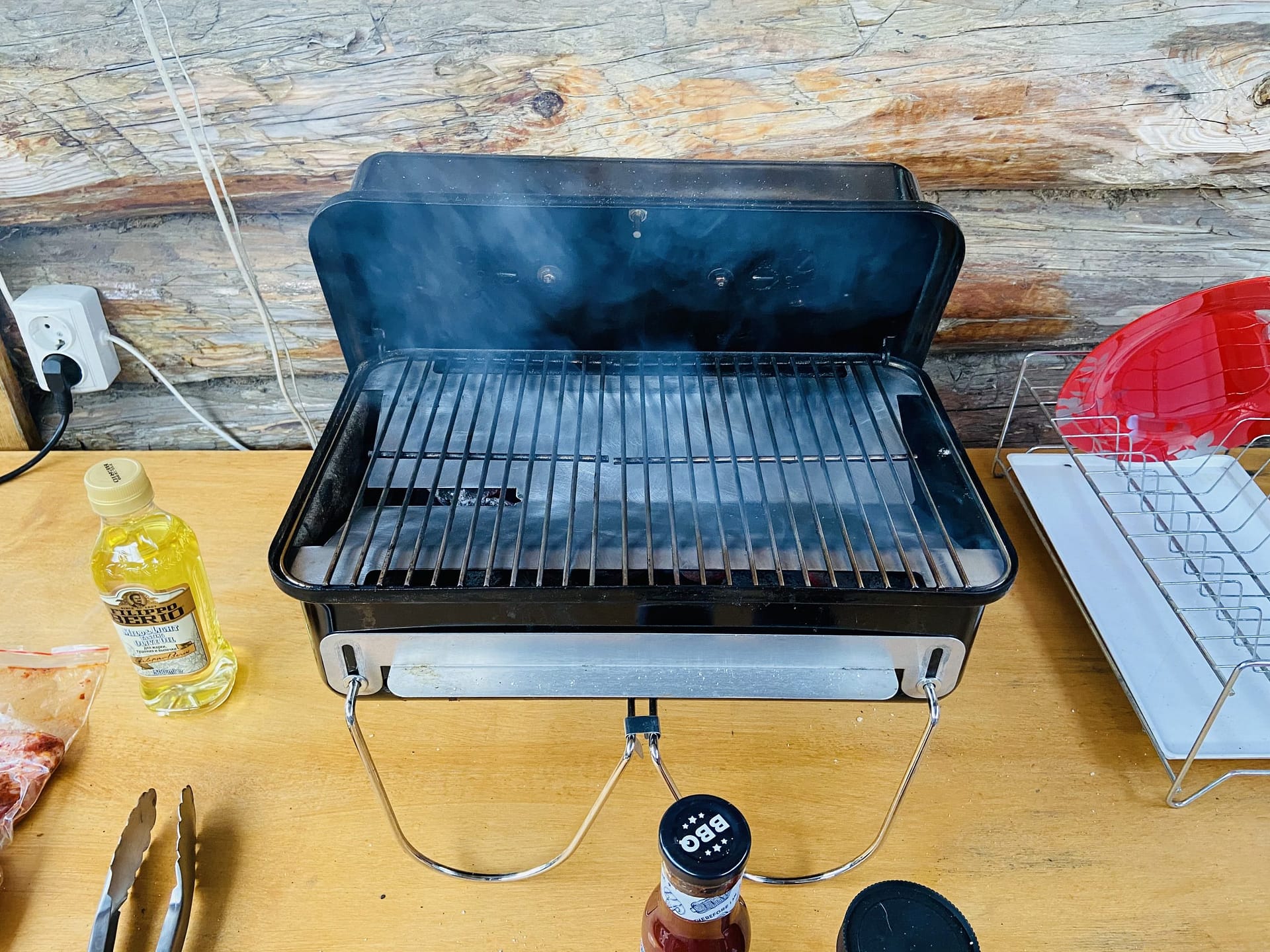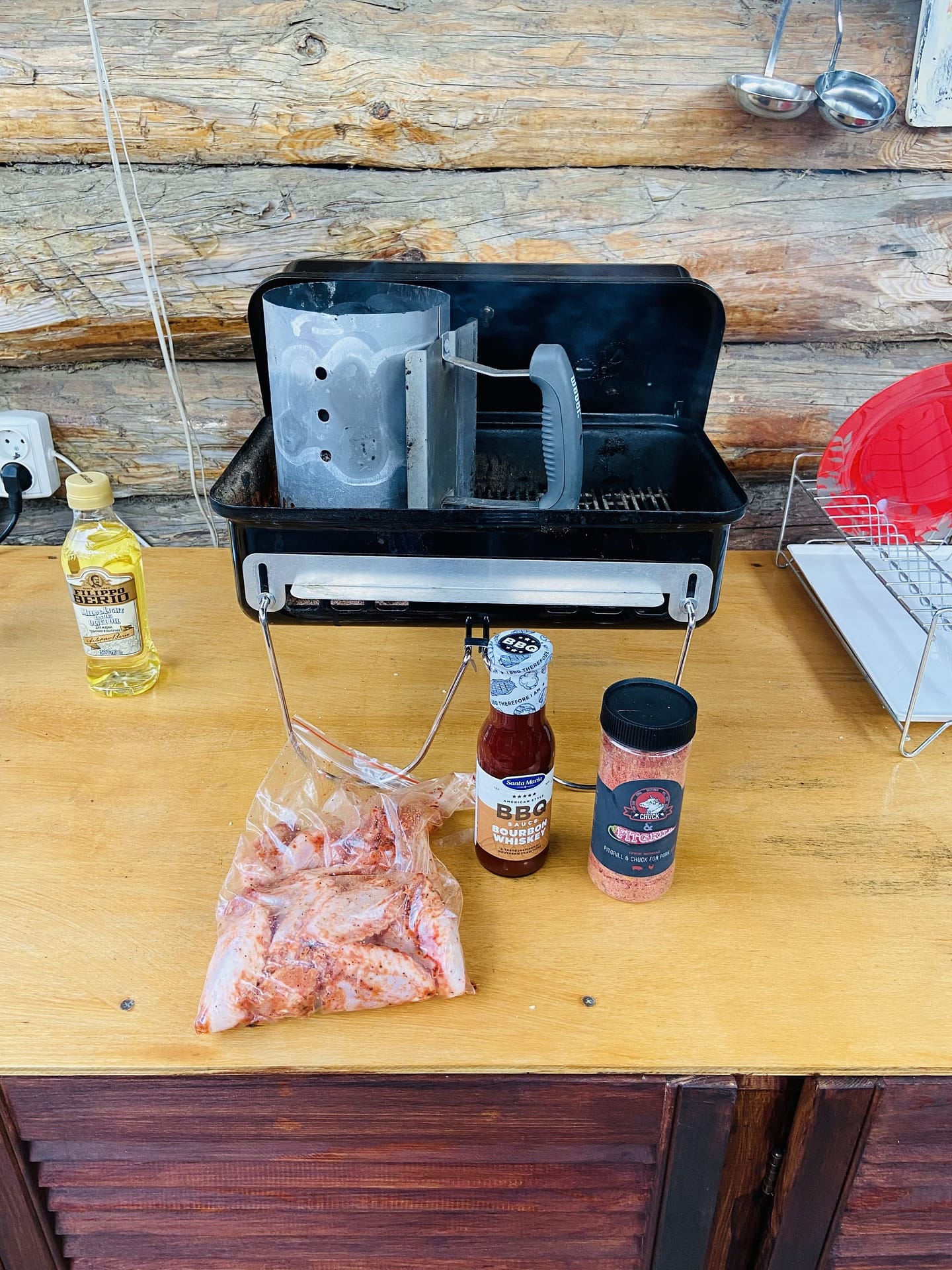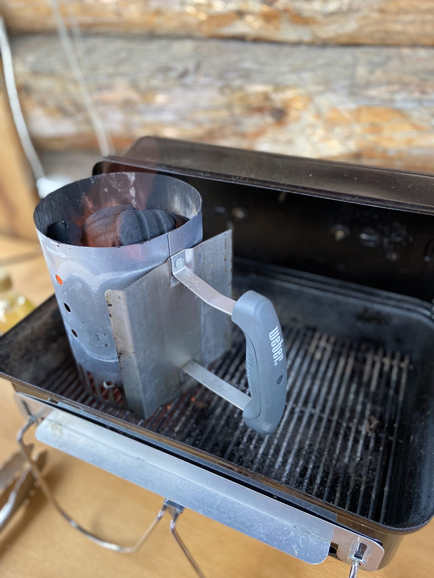 Расход брикетов просто мизерный! Постоянно лежит в багажнике. Можно (при распиле решетки) положить внутрь стартер с брикетами, решетку, щипцы, продукт, щепу и пойти на улицу. Живу на набережной у Волги, так зимой ходили на тот берег, там делали крылышки и обратно приносили затушенные брикеты.