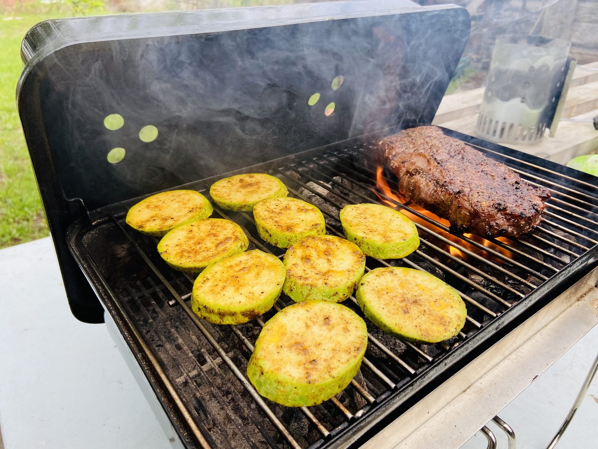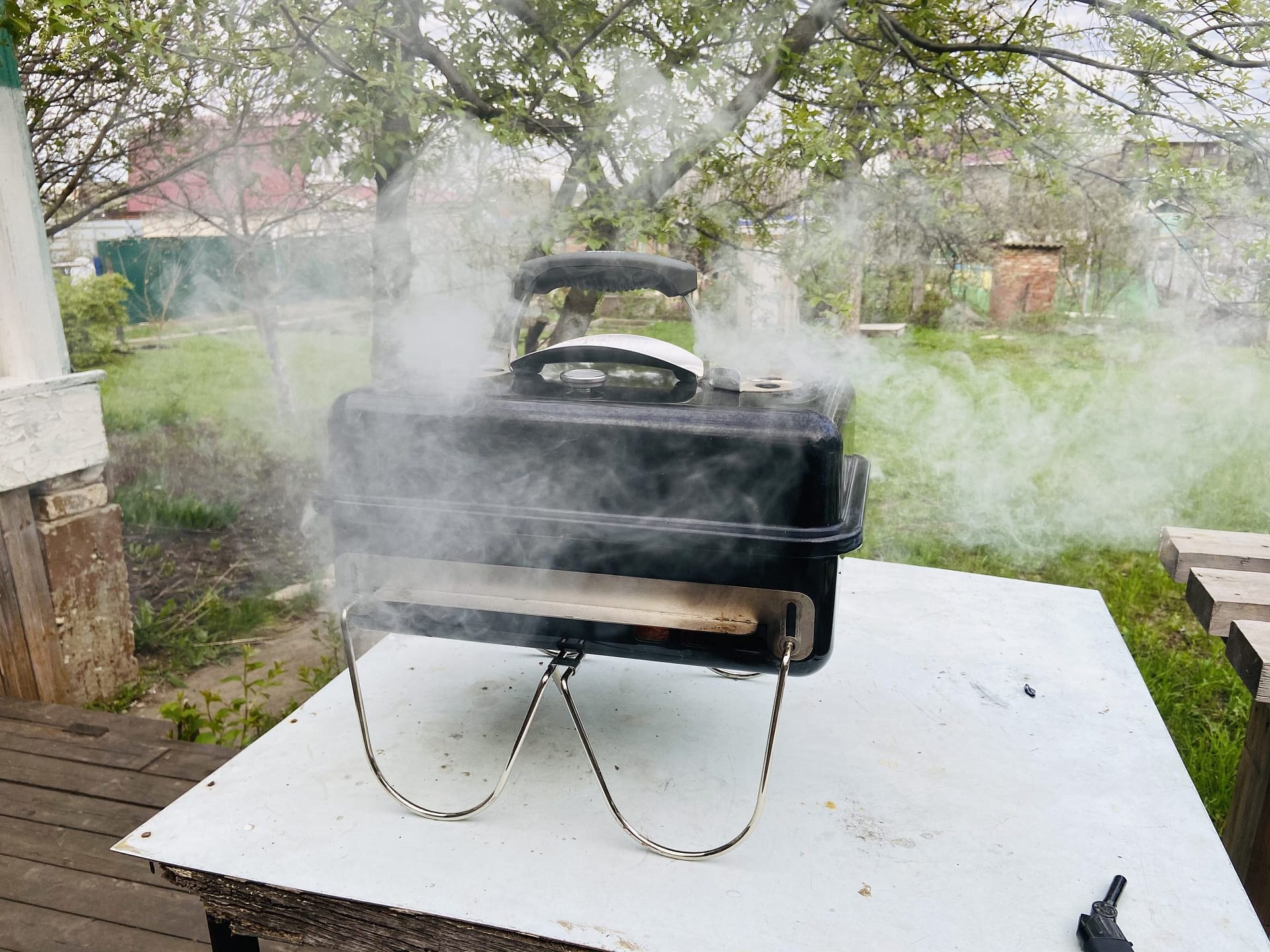 Гриль стоит на даче, живу в городе. Осенью решил не закрывать гриль-сезон и взял Weber Go Anywhere угольный.