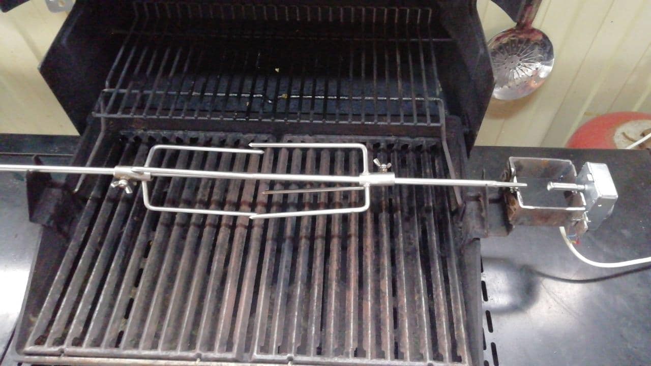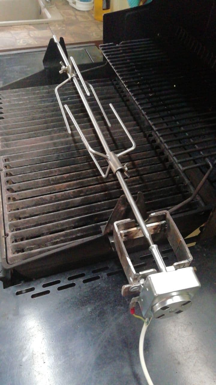 Крепления под вертел у меня на гриле были сразу. Пришлось лишь покумекать как закрепить мотор. Кстати, в одном из роликов видел, что используют мотор от микроволновки. но хорошо, что не взял такой, потому что в процессе приготовления вертел нагревается прилично, соответственно и место соединения с мотором тоже и сам мотор. Указанный выше мотор от вертела духовки, он нагрева не боится.