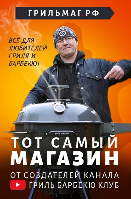 Подготовьте угольный гриль для работы в режиме непрямого среднего жара (180-200 °C), на свободную часть решетки для угля установите поддон для сбора жира. Рекомендации по приготовлению на газовых и пеллетных грилях смотрите в конце видео (14:05 и далее).