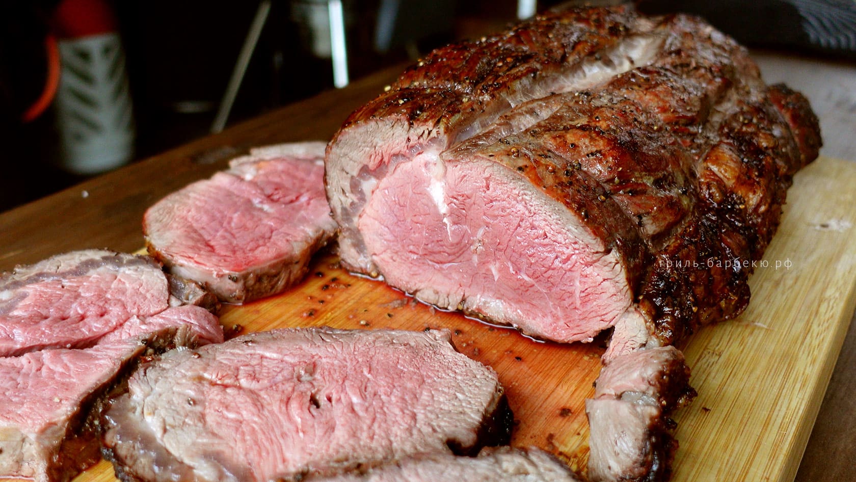 Настоящий класс «люкс» среди барбекю. Очень эффектное блюдо не только при подаче на стол, но даже во время приготовления: только представьте, как соки обтекают этот ростбиф со всех сторон! Рибай получается мягким как вырезка, а по сочности его можно сравнить с брискетом. Ростбифа запросто хватит на десятерых едоков, и им, разумеется, обеспечен яркий аромат говядины, вызывающий аппетит!