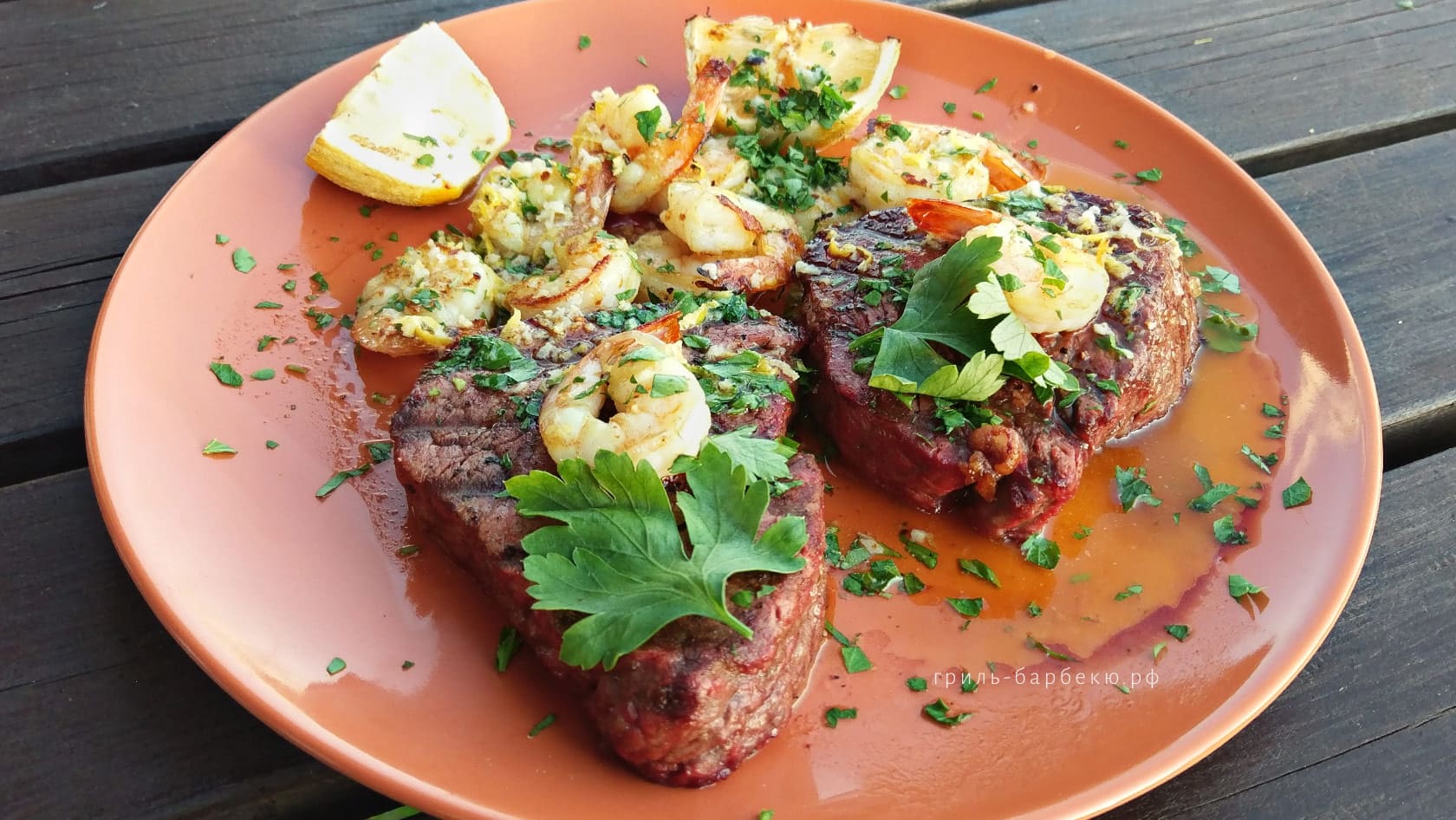 Пошаговый рецепт с видео — Стейки филе-миньон с креветками на гриле